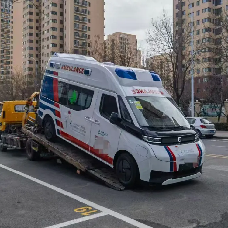 Drive motor peak 200KW, battery pack matched with Xinwangda ternary lithium battery, battery capacity 66kWh comprehensive working condition and display range 340KM, can meet the road rescue needs of 1-2 days in urban and rural roads, only need 20 minutes to to 300KM under fast charging conditions. The whole vehicle high-strength steel accounts for 70%, steel and aluminum mixed body, the structure weight is reduced 13%, the highest load capacity of the same level is 1.7t, the maximum towing capacity is 2t, and the latest ECE regulations the European Union meet the collision requirements; the medical cabin space is spacious and the design is reasonable;
